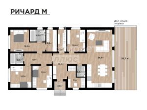 Для семьи с детьми в доме 4 комнаты и просторная кухня-гостиная (38,9 м²), где вы будете собираться с родными.