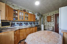 Дом построен из бетонных панелей. Общая площадь дома — 85,5 кв.м., из которых 45 - жилая площадь. Дом состоит из трёх комнат площадью 16, 15 и 14 кв. м., а также просторной кухни, в которой установлен газовый котел. При входе в дом пристроены два помещения из сип панелий. В доме три раздельных комнаты, которые расположены на две стороны. Во всех помещениях установлены пластиковые окна. По всему периметру уложен линолеум. В зале- натяжной потолок, в остальных комнатах и на кухне - потолочная плитка. Сан.узел - раздельный. Ванная комната частично в кафеле, туалет - обои. Под домом во всю площадь находится подвал, в котором можно хранить овощи и заготовки на зиму. Попасть в подвал можно как с отдельного входа. так и с кухни.