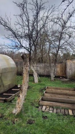 На участке теплица 2x3 метра, плодовые деревья и кустарники (яблони, груши, вишня, жимолость, малина, клубника, смородина)