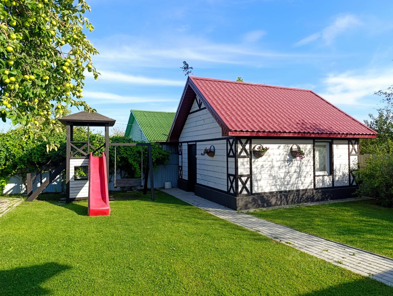 На участке имеется теплица 2*4 метра, парковка из брусчатки, - входит 2 машины + парковка перед воротами на 5 машин. Растет 3 вишни, 1 яблоня, 2 смородины, 3 крыжовника, малина.
