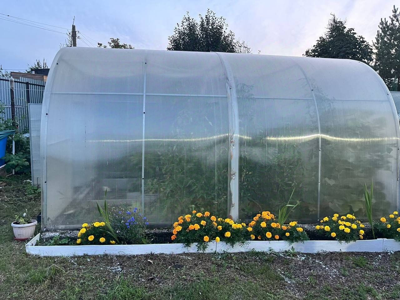 Теплица на фундаменте, гараж, туалет, баки для воды,душевая на фундаменте.