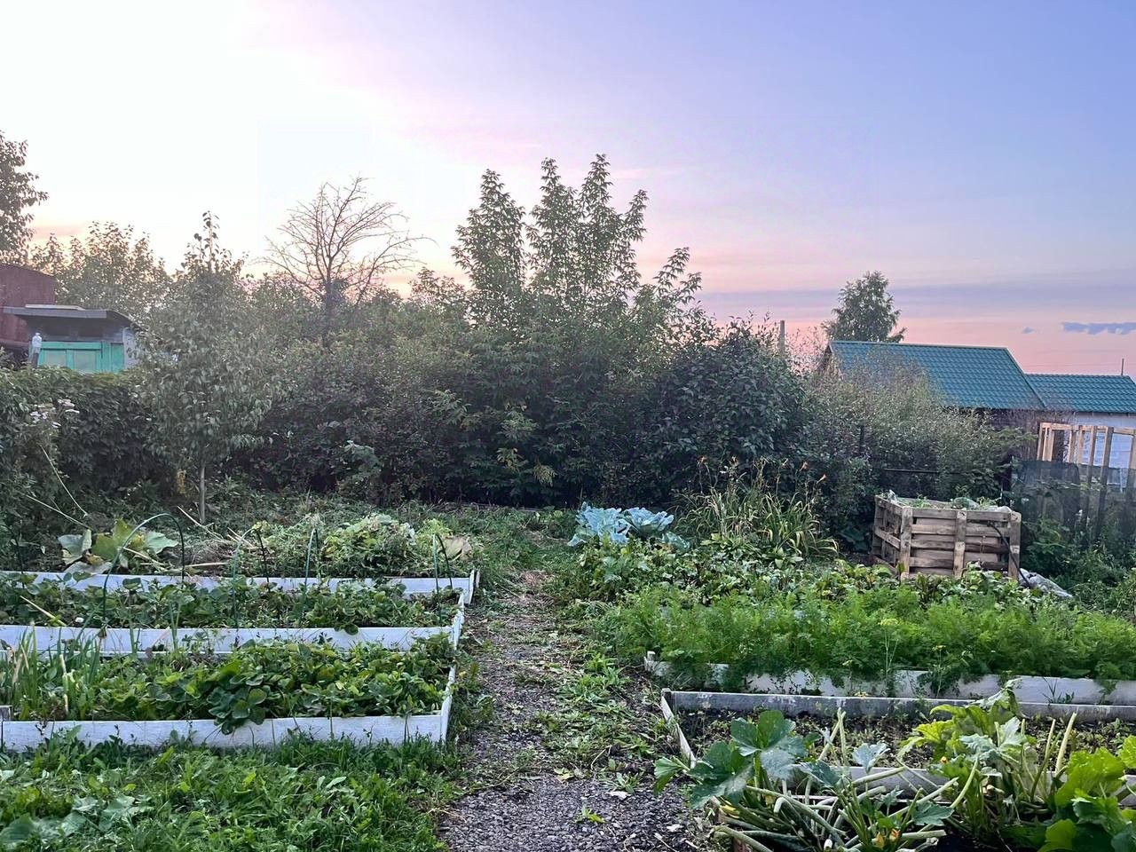 3 яблони, 2 абрикоса, груша, малина, смородина,ежевика. Виктория, цветы.