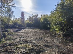 * Участок полностью очищен от зарослей и готов к началу строительства. Срезанный дерн сложен на территории и в последующем может использоваться для выравнивания участка и улучшения плодородия грунта.