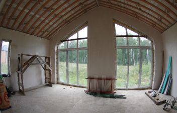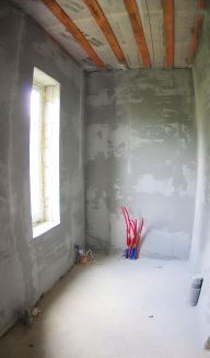 Дом внутри оштукатурен.
