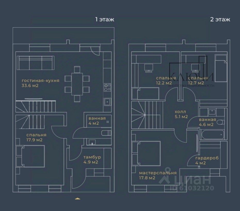 Площадь таунхауса: 122 кв. в черновой отделке