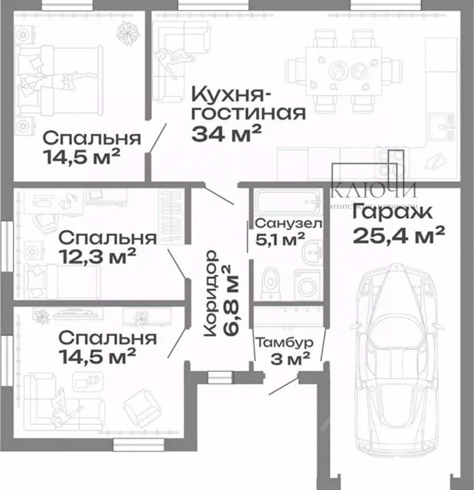 3 спальных комнаты