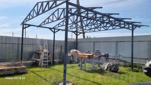 Земельный участок ровный, не в низине, обработан. На участке установлен металлический каркас для парковки автомобиля, требуется только произвести устройство кровли, так же возможно построить теплый гараж, площадь участка позволяет это осуществить. Участок огорожен забором из профлиста, ворота автоматические.