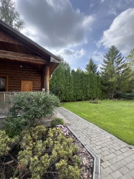 А также есть отдельная баня на дровах с мангальной зоной, роллеты на окнах и автополив.