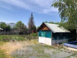 На территории участка находится летний домик, небольшой бассейн, баня, хоз. постройки, теплица. Посажены плодово-ягодные и хвойные деревья.