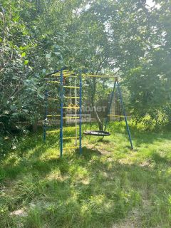 Оборудована детская площадка с качелями.