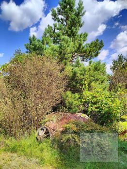 Вторая зона участка подразумевает рабочую для посадок и выращивания садовых культур. На участок имеется два входа: общий через калитку и для грузового транспорта. Так же залит фундамент под дом.