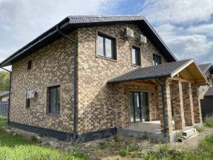 - стены: наружные выполнены из инси-блока 400мм/вент.зазор/ облицовка кирпич, уличное фасадное освещение;