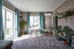 Отделка: натяжные потолки, керамогранит на полу, обои на стенах, тройные стеклопакеты.