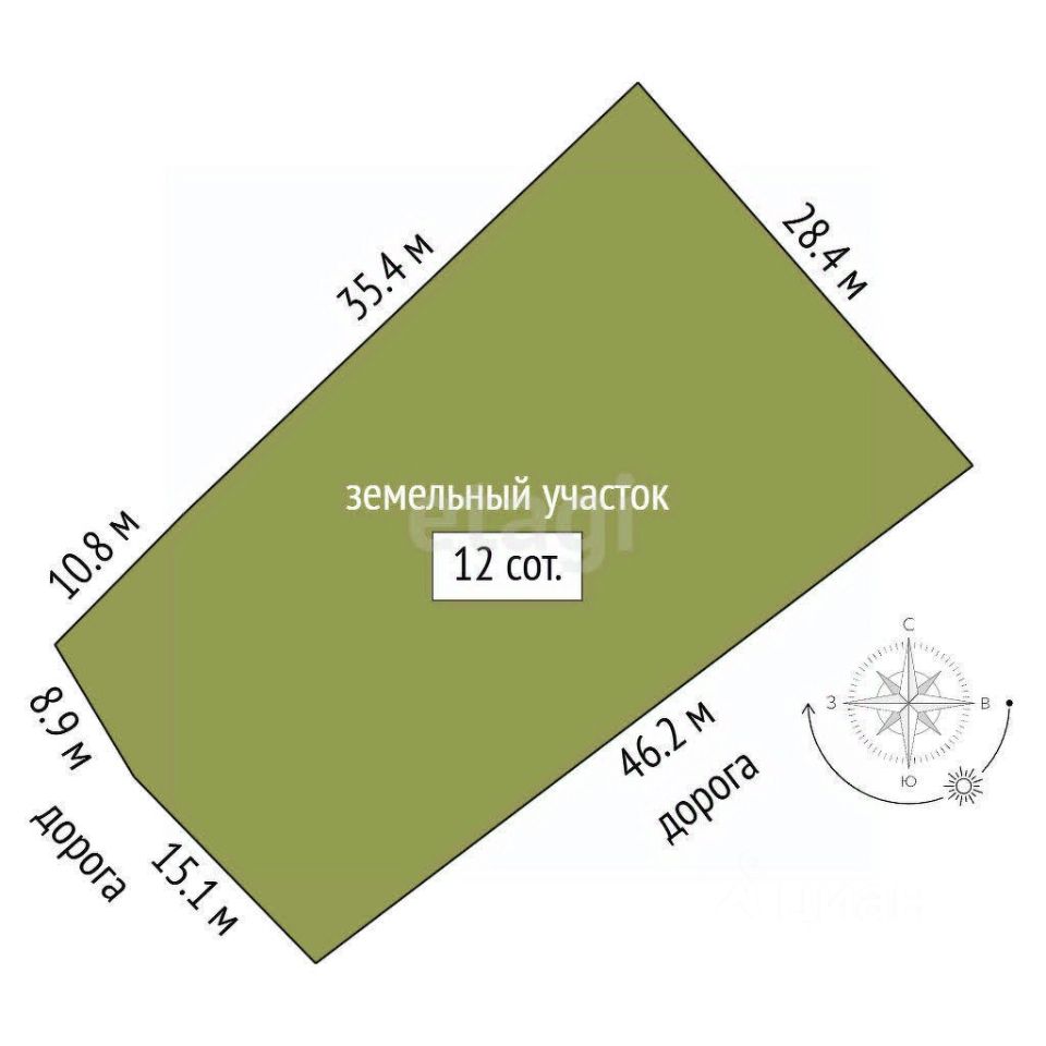 Просторный земельный участок 12 соток, забор из сетки рабицы с одной стороны, соседи расположены только с одной стороны. С двух сторон дорога. Газ заведен на участок.