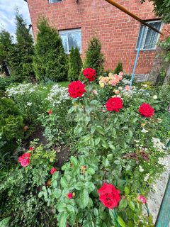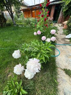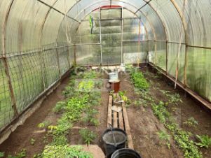 Земельный участок площадью более 10 соток, на котором расположен гараж площадью 43 кв.м., вмещающим два автомобиля, а также баня, отапливаемая дровами. На территории находятся две теплицы, а также многолетние кустарники и деревья: яблони, груша, вишня, молодой виноград и фундук (первый урожай уже собран). Участок украшен туями и газонной травой на площади 40 кв.м., создавая атмосферу загородной жизни в летний сезон.