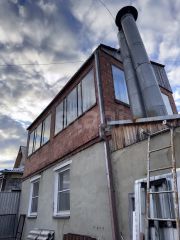 Дом блочный и облицован кирпичом, перекрытие-плиты, в доме пластиковые окна везде кроме веранды на втором этаже.