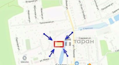 Подъезд к участку с основной дороги, рядом дом 1 по улице Мира