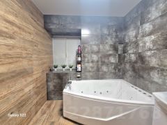На 1 этаже расположены подсобные помещения, котельная и большой отапливаемый гараж (вмещает грузовой манипулятор) с отдельным входом в дом и выходом в огород. На 2 этаже расположены прихожая, кухня-гостиная, большая ванная комната с джакузи и теплым полом, лоджия с евро окнами и теплым полом. На 3 этаже расположены две спальни, детская комната, вторая ванная комната, лоджия с евро окнами и теплым полом, сауна с душевой и зоной отдыха с теплыми полами и камином-мангалом.