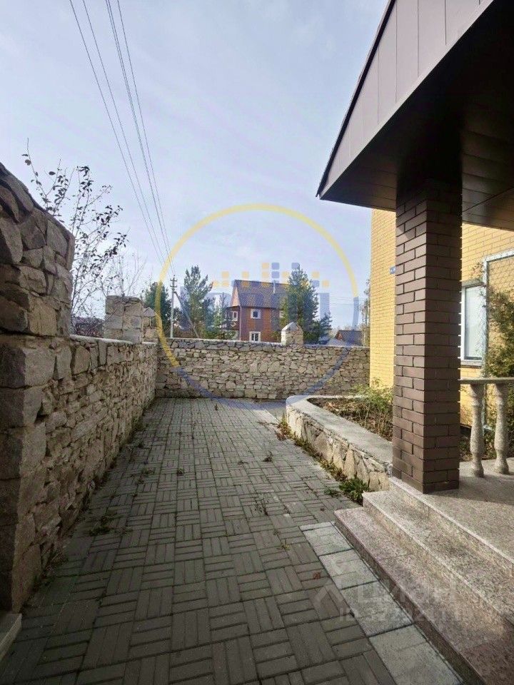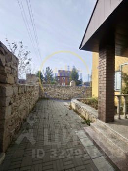 Придомовая территория облагорожена тротуарной плиткой, окружена забором из красивого натурального камня, создавая