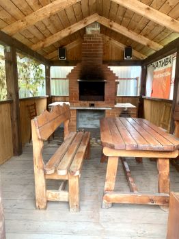 На участке расположены: БАНЯ из бревна 6*4 м. на заливном фундаменте, оборудованная мангальная зона, 2 теплицы, сарай для животных из бруса.