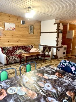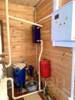 Коммуникации: отопление- электрический котёл, дровяной котёл (встроен в печь), холодное водоснабжение: скважина, в душевой кабине и на кухне- водонагревательные баки, канализация - выгребная яма.