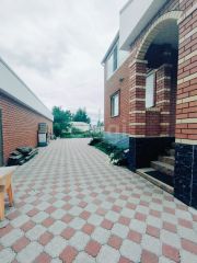 Двор выложен тротуарной плиткой.