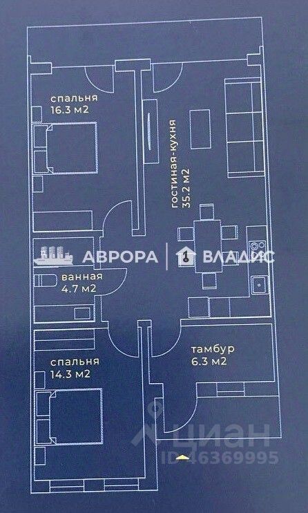 - Комната 2 - 16,3м².