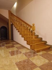С гостиной 1 этажа деревянная лестница на 2 этаж таун-хауса.