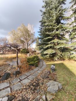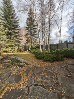 Участок 21,5 сотки, 100 кв.м. огороженный двор с брусчаткой, остальное газон. Для участка разрабатывался проект ландшафтного дизайна. Установлена система автоматического полива Nеlsоn/. Есть пруд с растениями и рыбками, каменная беседка с зоной барбекю, и множество растений и деревьев(голубые ели, можжевельники, пихта, кедр и т.д.). Есть плодовые деревья(яблони, груши, абрикос) Так же имеется детская зона с песочницей и игровой площадкой Кеttlеr. Выход в лес.