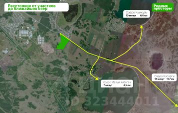 Оз. Кумкуль - 6.6км (13 минут на автомобиле), оз. Малый Кисегач - 4.5км (7 минут на автомобиле), оз. Касарги - 12 км (15 минут на автомобиле).