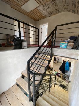 - добротная лестница металлический каркас, финишные деревянные ступени.
