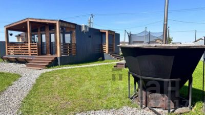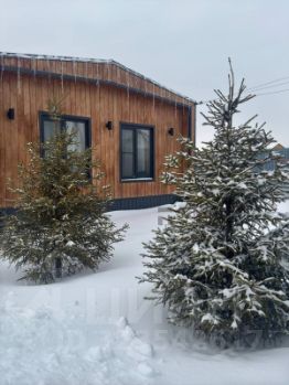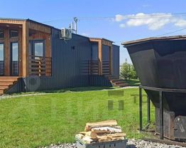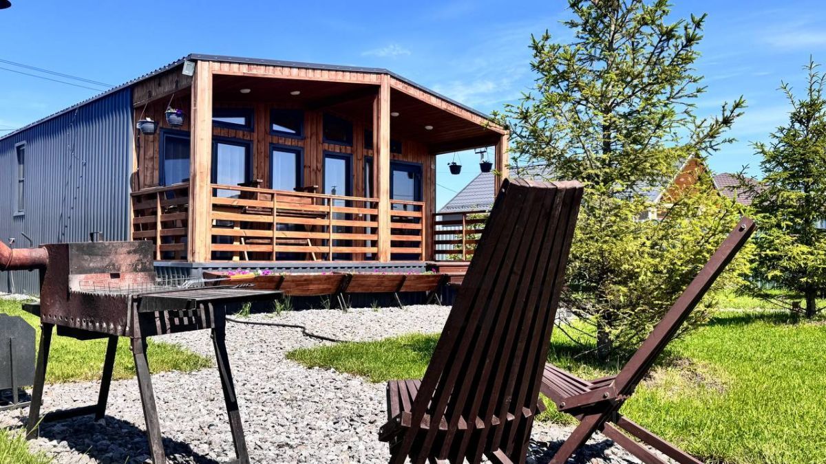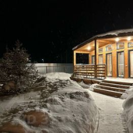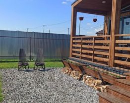 Каркасный дом (барнхаус) общей площадью 72, 5 кв. м. с террасой, баней и чаном на участке.