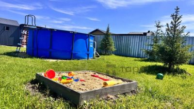Участок облагорожен, высажены хвойные деревья, цветы и газон, оборудовано место под дровницу, мангальная зона, бассейн на летний период, чан, песочница, батут.