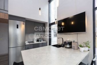 Современный дизайн: Кухня-гостиная в стиле минимализм с высокими потолками и качественным ремонтом создает уютную атмосферу.