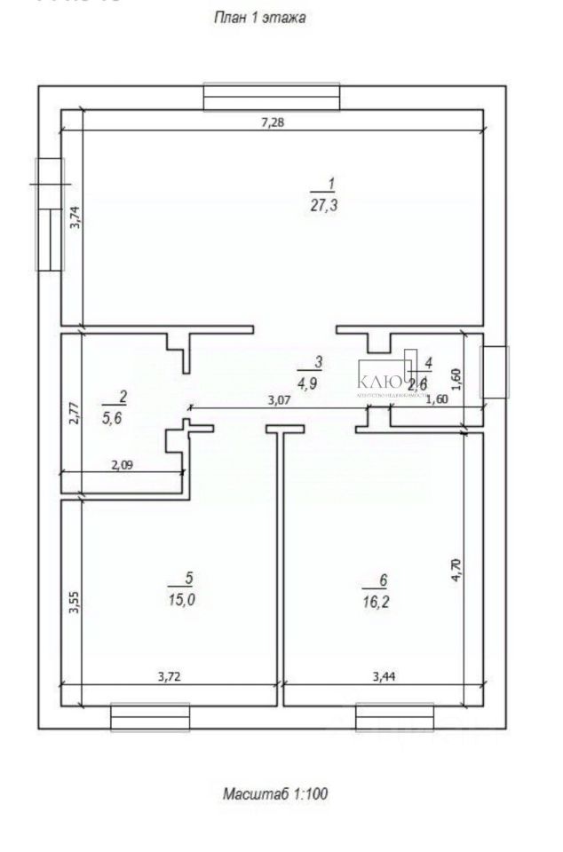 1 этаж: кухня-гостиная с выходом на участок, 2 спальных комнаты, санузел