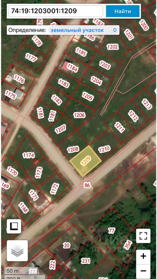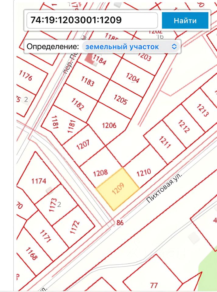 Номер кадастрового участка: 74:19:1203001:1209