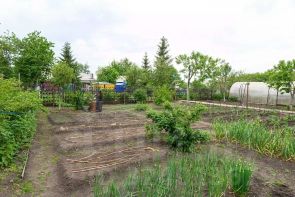 - Огород ухожен. По периметру участка высажены декоративные и плодовые деревья, земля чернозем.