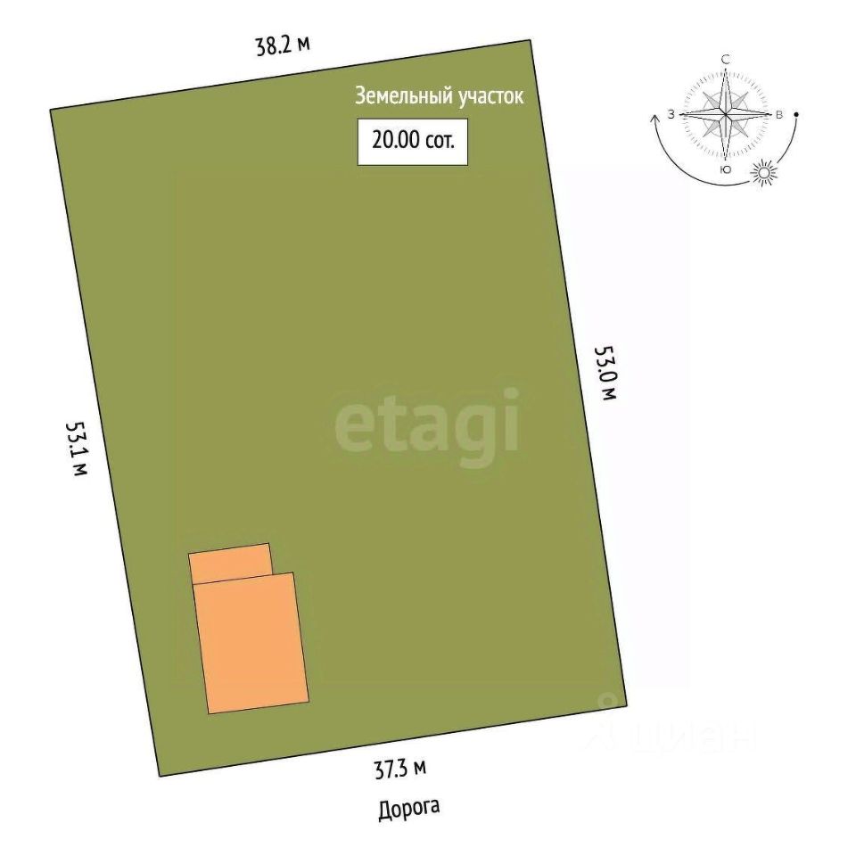Земельный участок очень большой, ровный, общей площадью 2000 квадратных метров, на нем находятся хозяйственные постройки в виде навесов. Территория по периметру огорожена забором из сайдинга.