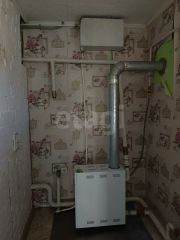 В доме установлен газовый двухконтурный котел для отопления и нагрева воды, водоснабжение центральное, канализация септик, пoл из бpусa, частично линолеум.