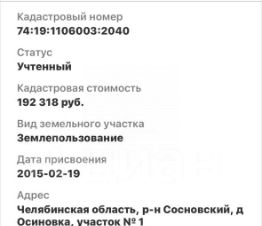 Кадастровый номер: 74:19:1106003:2040