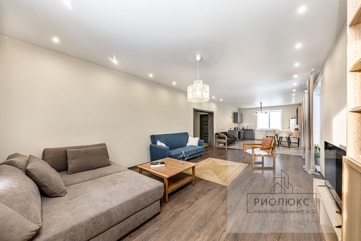 - Кухня-гостиная 55,4 кв.м., из них зона кухни - 17,4 кв.м. и зал 38 кв.м.