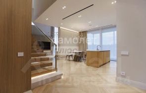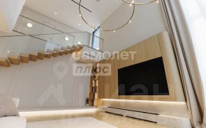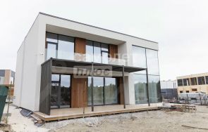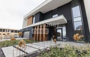 Дом выполнен в современном стиле с эффектными панорамными окнами, наполняющими интерьеры естественным светом и открывающими великолепные виды. Общая площадь включает просторную гостиную со вторым светом высотой 7 метров, что создает ощущение свободы и простора. Здесь гармонично сочетаются элегантные премиум материалы: мебель изготовлена из шпона, напольное покрытие: теплая деревянная паркетная доска и лестница из натурального дерева.