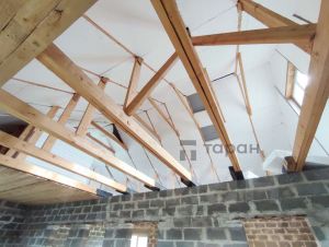 Построен на ленточном фундаменте из блоков 40*20*20 в два ряда, наружные стены утеплены, оштукатурены. Пол в доме утеплен минеральной ватой.