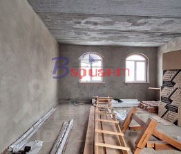 Дом построен из пеноблока, облицован кирпичом, железобетонные перекрытия, внутри выполнена "черновая" отделка, установлены евроокна. Водоснабжение - скважина глубиной 20 м., возможно подключение к центральным водопроводу и водоотведению. Электричество заведено и подключено. Газ подведен к дому, осталось произвести подключение (документы готовы).