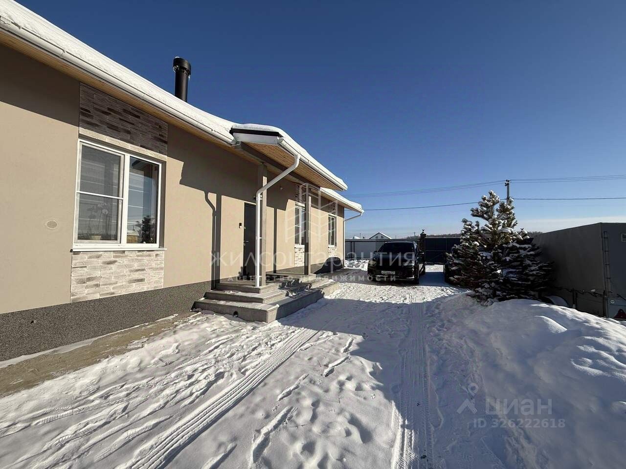 Дом построен из газоблока 300, утепление на 100 плюс мокрый фасад с вставками из натурального камня.