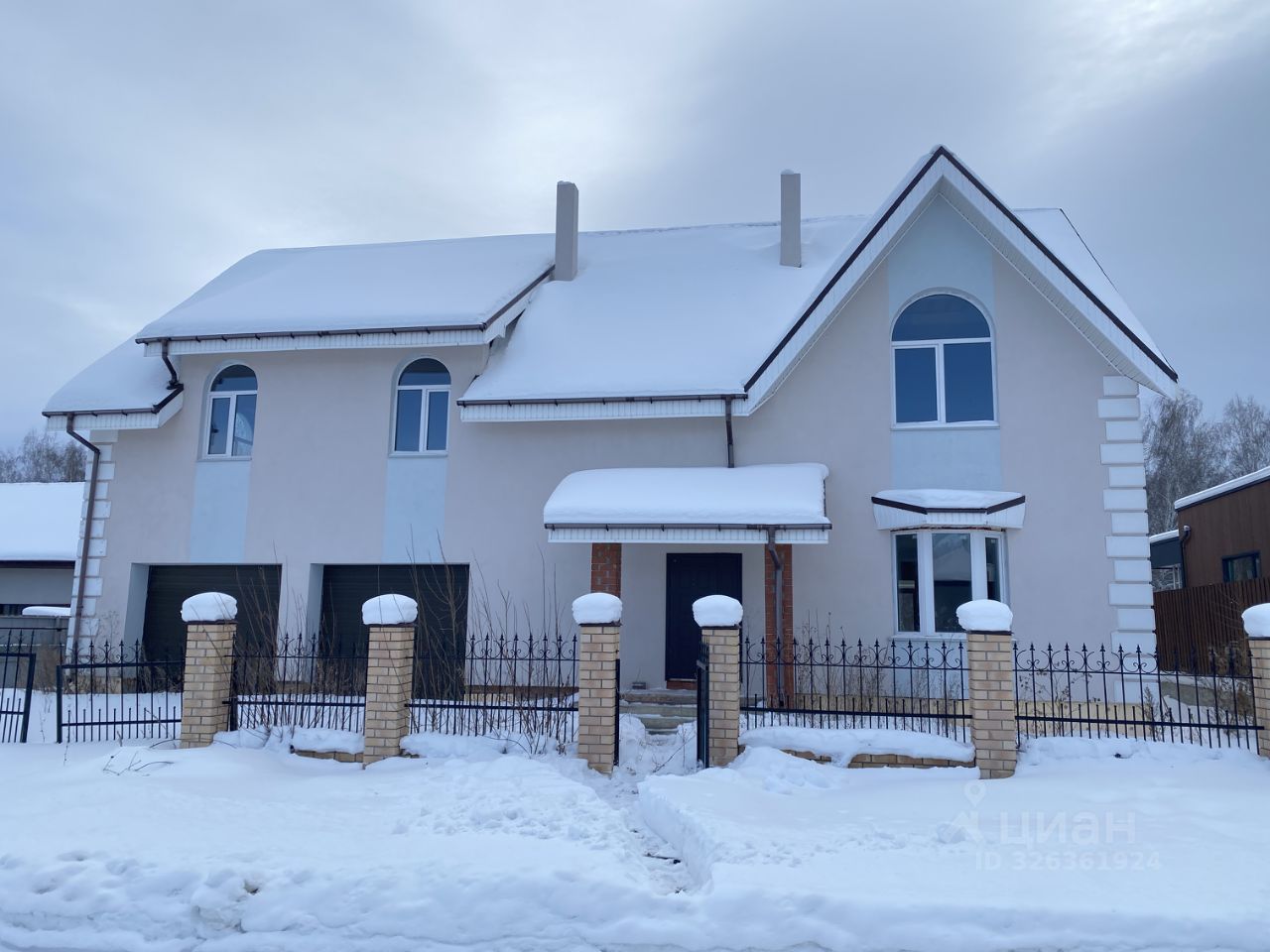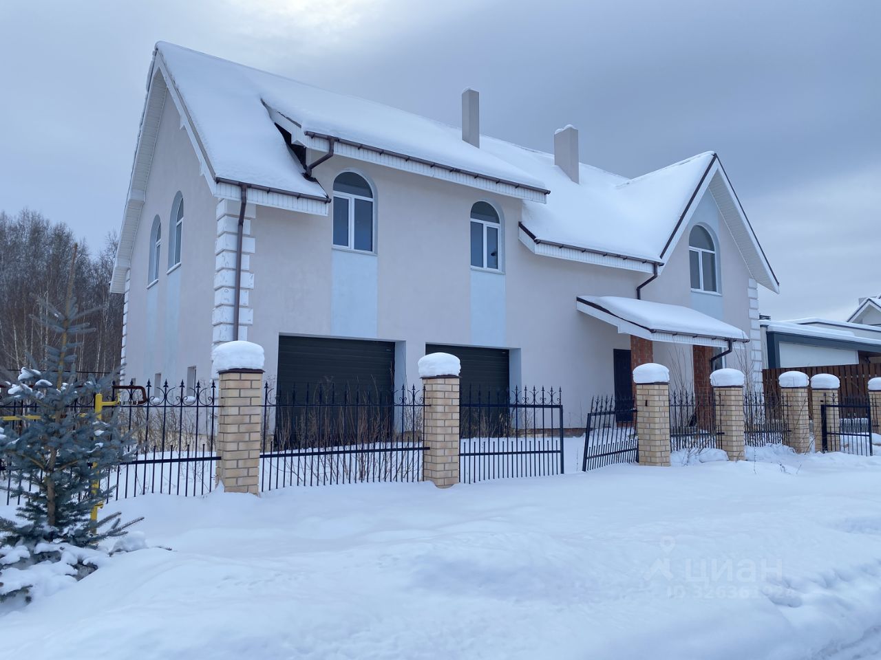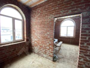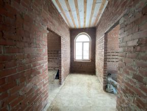 По проекту построен из кирпича в 2а этажа, общая площадь 345.5м2, высота потолков 3.2м: