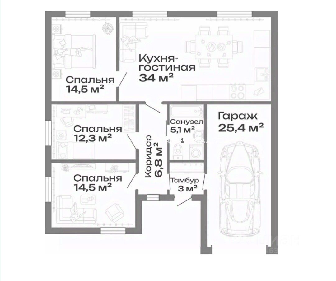 спальня 3 - 14,5 м²;