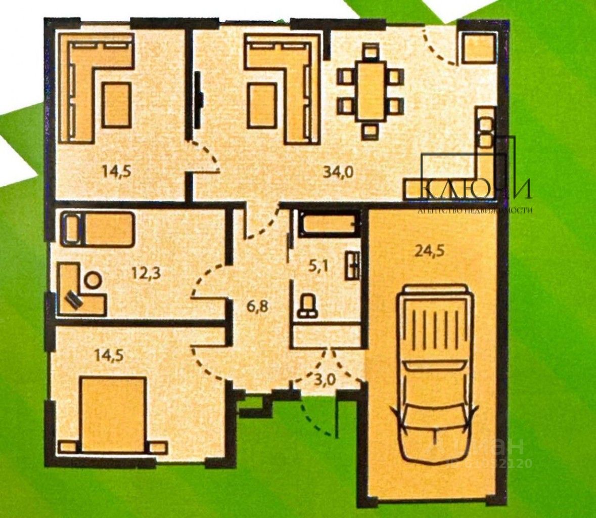 Дом + гараж. Кухня - гостиная 34 кв.м., 3 спальни, с/у, большой холл, гараж 24,5кв.м