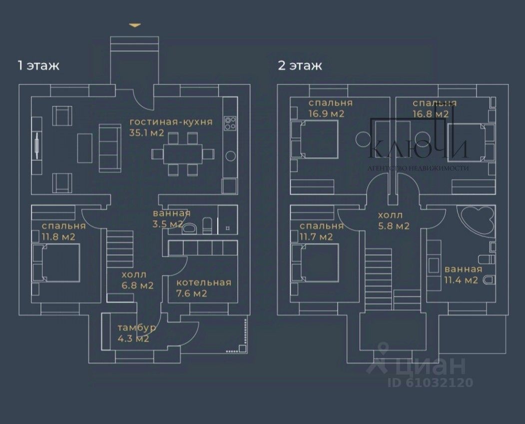 площадь дома 155 кв. м;