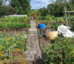 Колодец, по участку разводка воды со шлангами. Есть четыре бочки, что очень удобно, не нужно бегать чтобы полить весь участок.